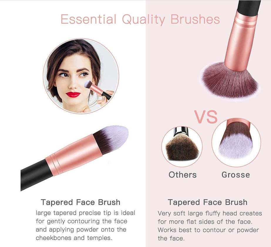 - PREMIUM SYNTHETIC MAKEUP BRUSHES: Made with soft and dense synthetic fibers to provide a high definition finish with liquid, powders or cream foundation without any absorption of product and no shedding