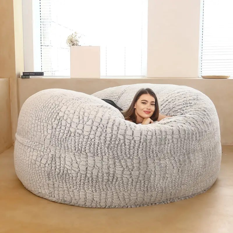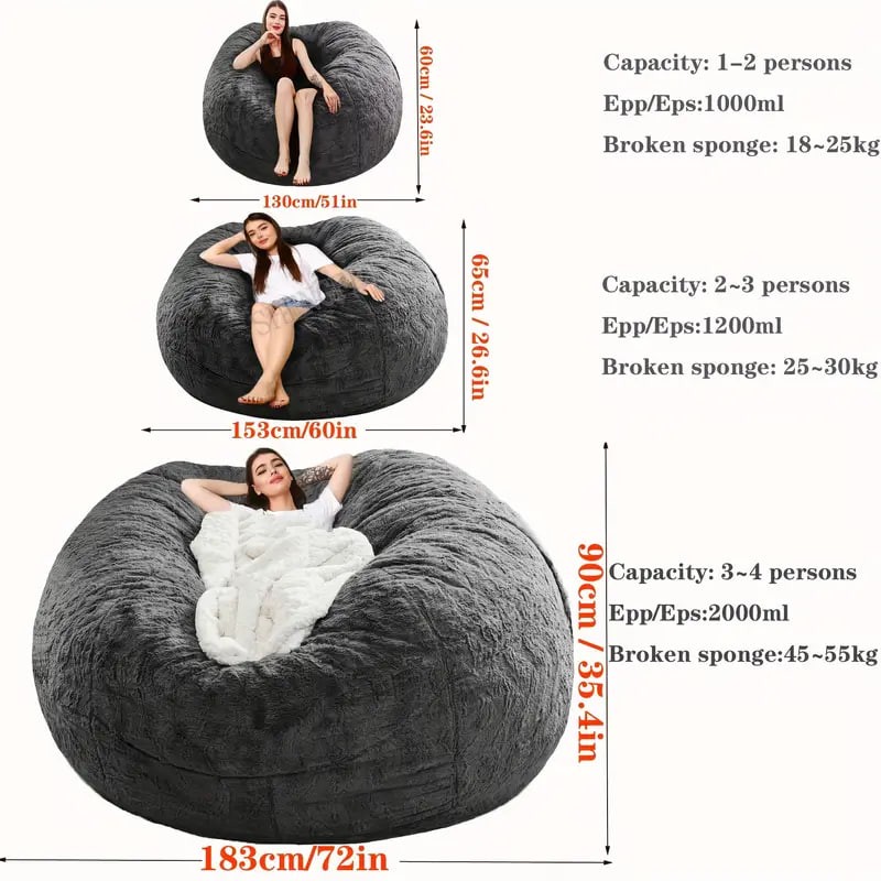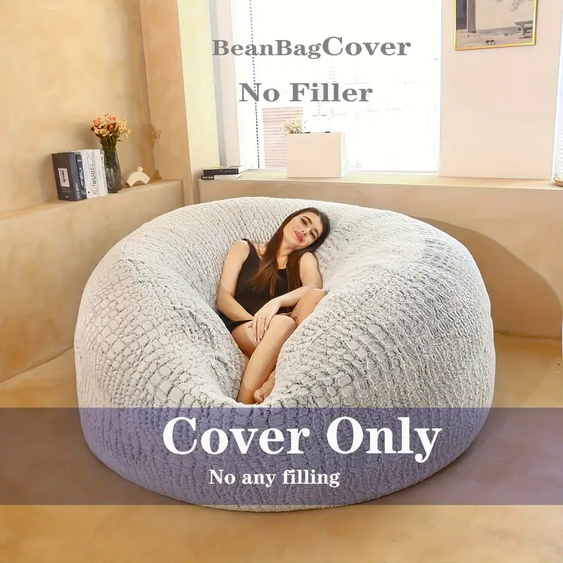 About this item High Quality:Our ultra soft bean bag chair cover is made of eco-friendly flocking PV, which is soft, cosy, environment-friendly, skin-friendly, air-permeable, wear-resistant, stain-resistant and fade-proof. Huge Selection: We have a very large selection of sizes and colors to choose from to fit any decorate.Oversized Sack Cover: 150cm/59.06 x 59.06x 25.59 inches (Cover only)