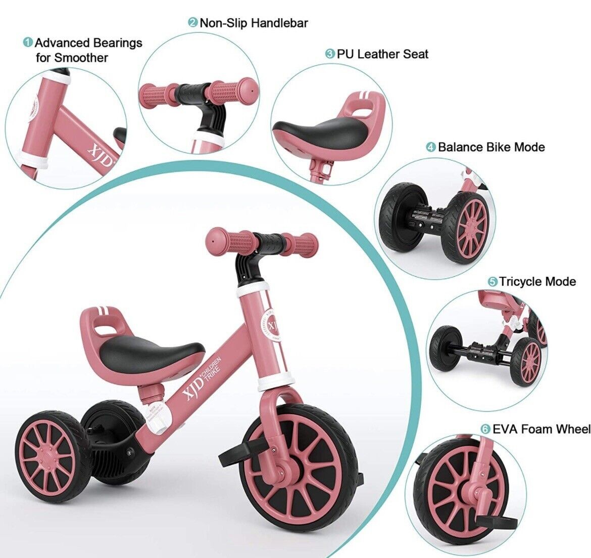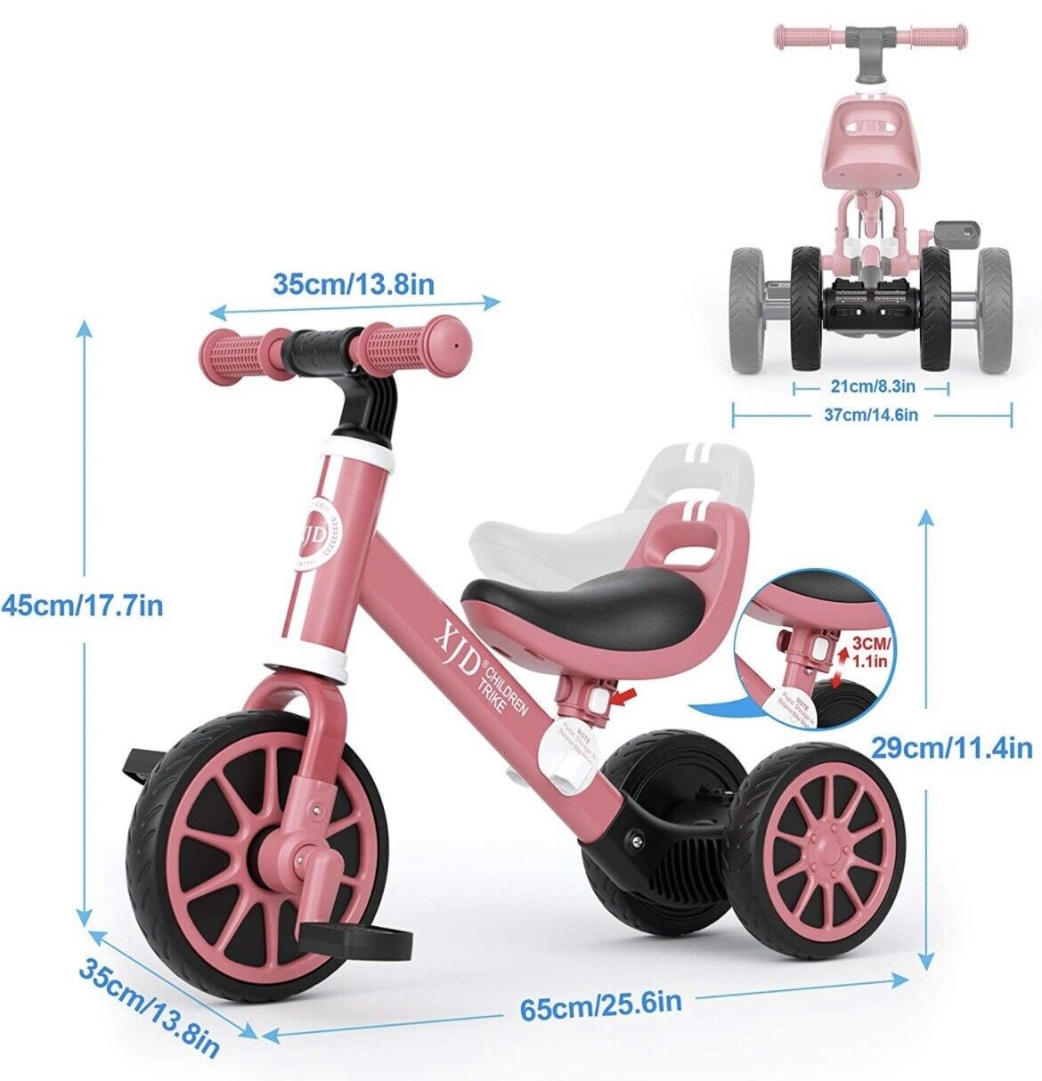 3 in 1 Kids Balance Tricycle Toddler Girl Boy Adjustable Seat Removable Pedal