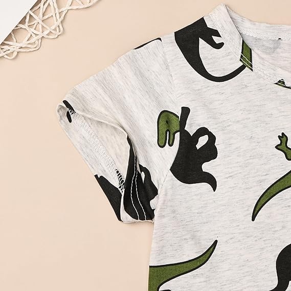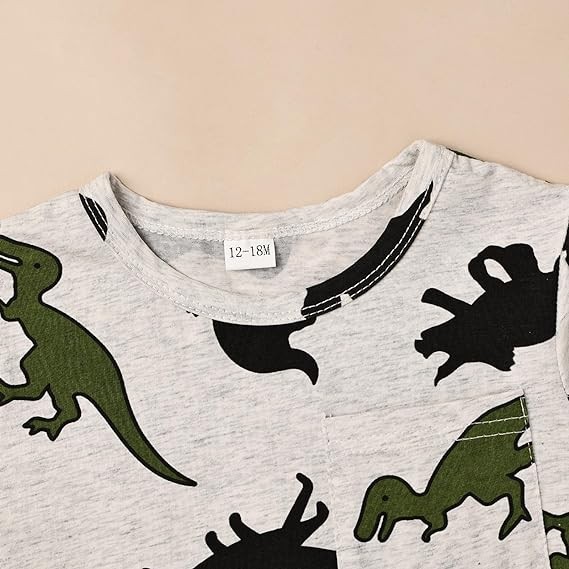 Dinosaur Printed Design: Full dinosaur printed design, your baby will love this shirt, convenient small pockets for storing snacks or small toys. Elastic waistband is comfortable to wear, and the pants are adorned with a bow decoration at the waist, making them extremely cute.