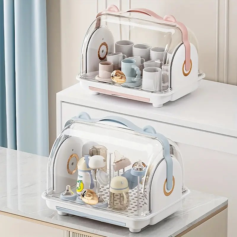 baby desktop storage box with lid dustproof bottle drain storage rack baby tableware food supplement tool finishing and storage details 1baby desktop storage box with lid dustproof bottle drain storage rack baby tableware food supplement tool finishing and storage details 1