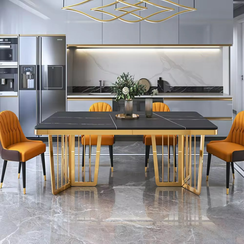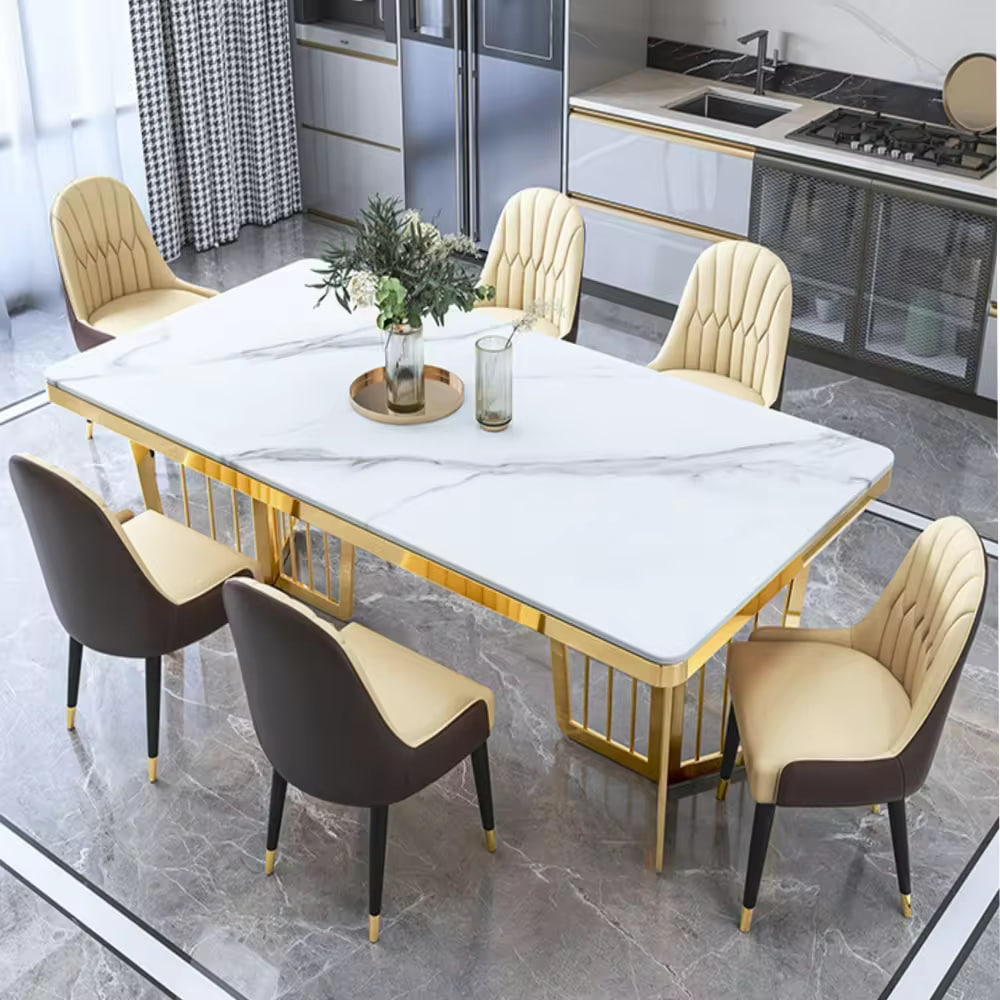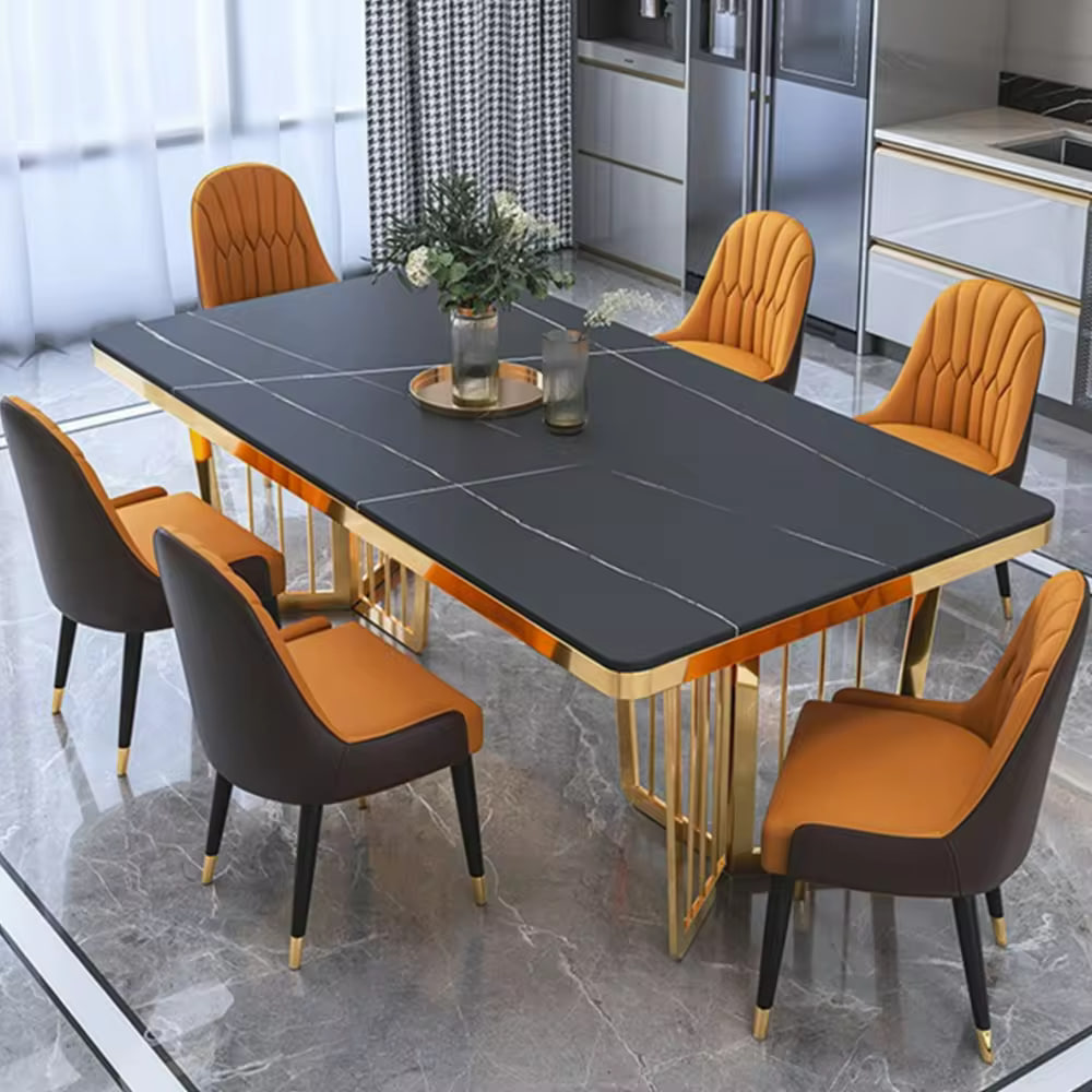 Bjflamingo Italian carbon steel dinning tables sets luxury 6 chairs