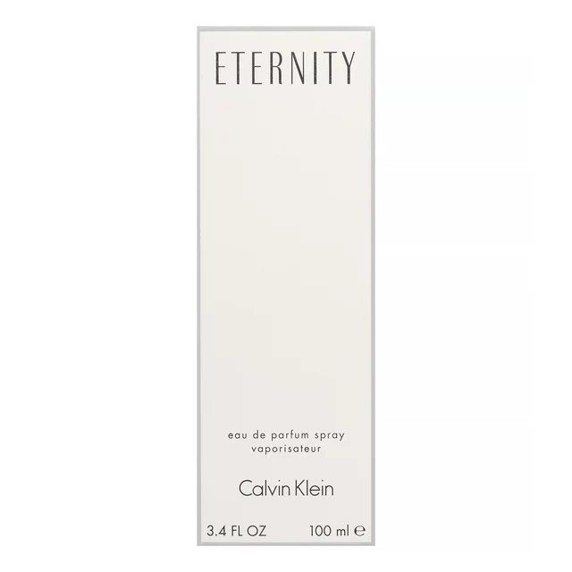 ETERNITY perfume was introduced by CALVIN KLEIN in 1988. This romantic floral fragrance contains freesia, mandarin, sage, muguet, white lily, patchouli, and sandalwood. Eternity body lotion worn with the perfume creates a romantic and luxurious fragrance all over. Eternity perfume is packaged in a clear glass bottle with a silver cap and is enclosed in a classic clean white box. Other fragrances from Calvin Klein include Eternity Moment and CK One.
