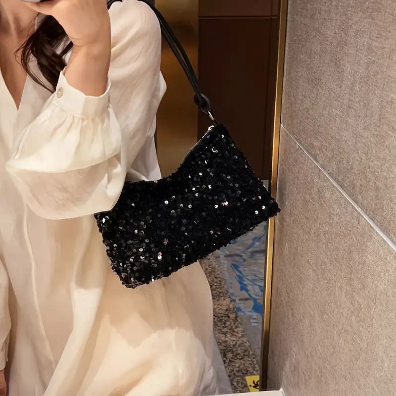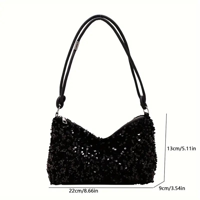Carnaval Black Sequins Decor Shiny Shoulder Bag, Classic Niche Zipper Underarm Wallet For Women For Music Festival