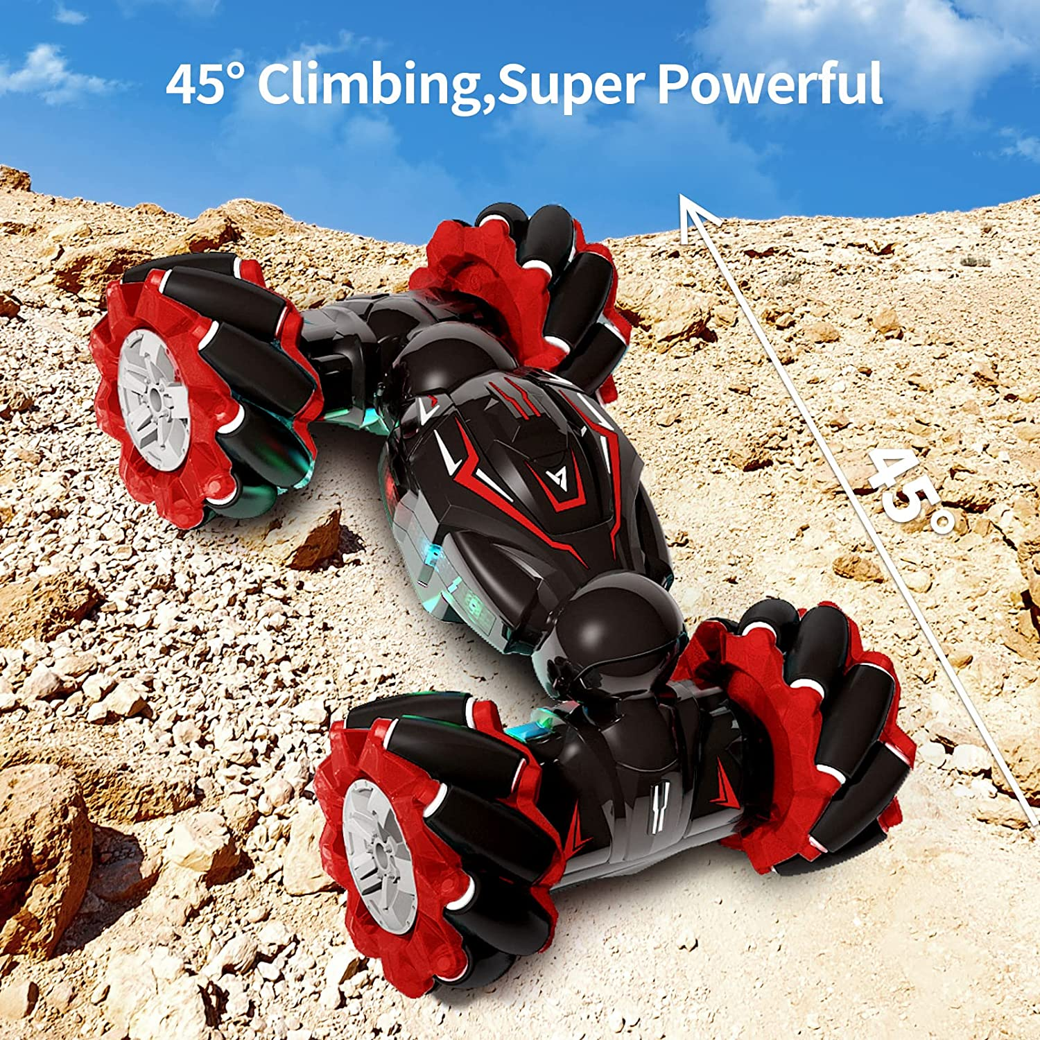 Deejoy Red RC Stunt Car, 2.4Ghz 4WD Remote Control Gesture Sensor Toy, Double Si