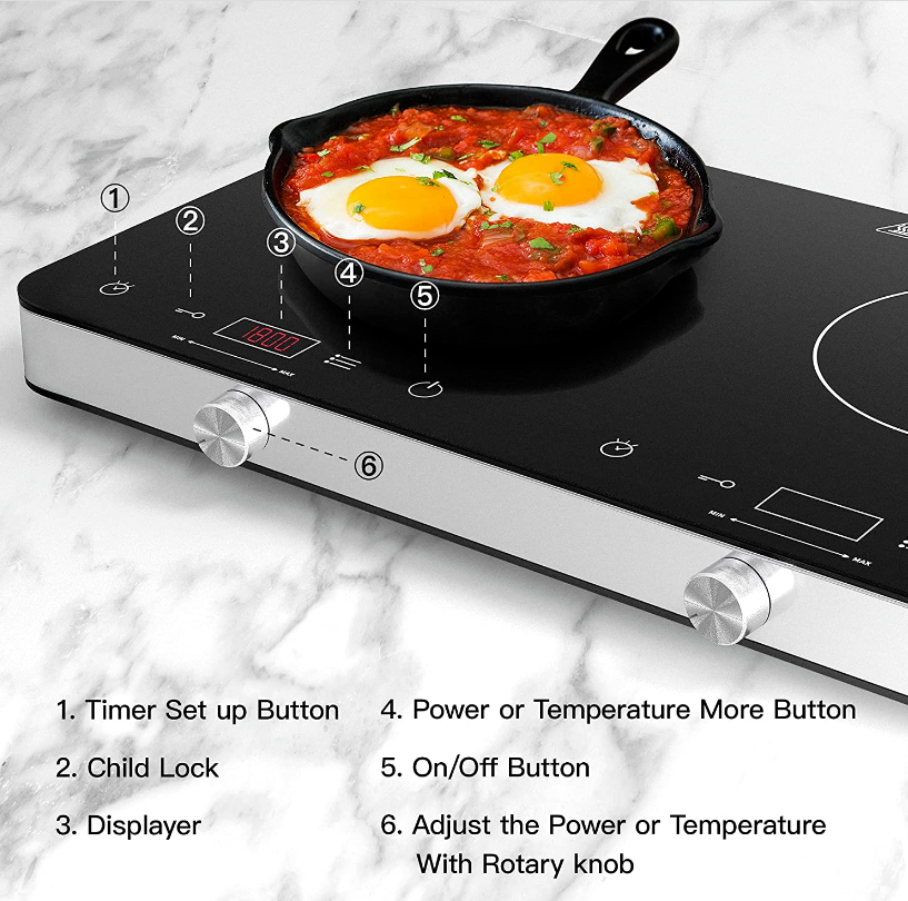 • ?????-???????????/????? ????????: 10 temperature levels 2 burner induction cooktop(adjustable temperature range is 140 °F to 464 °F), 9 power levels, quickly choose your desired power from 200W to 1800W in 200W increments. Sensitive touch buttons ensure convenience to use, set the time of your induction cooker ranging from 1 minute to 4 hours to ensure fine cooking and result.