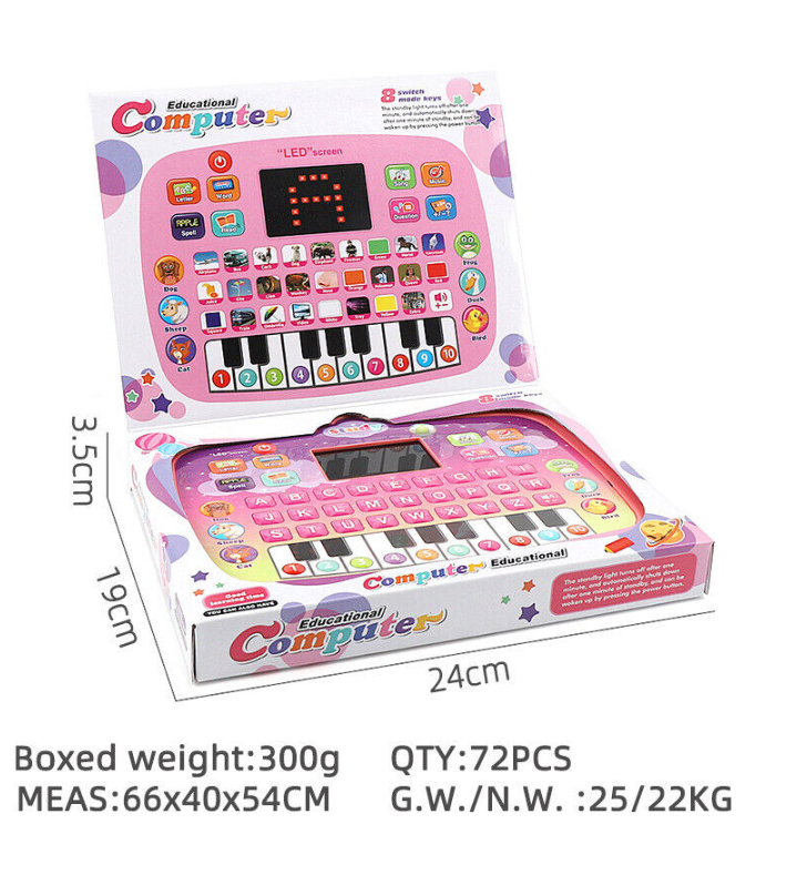 • Includes letters & words & math learning, interactive quiz games, piano playing, animal sounds, pleasant melodies, twinkling LED screen.