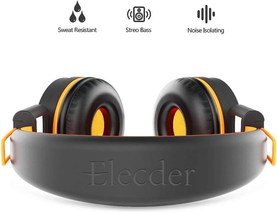ELECDER i37 Kids Headphones Children Girls Boys Teens Foldable Adjustable On Ear Headphones 3.5mm Jack Compatible Cellphones Computer MP3/4 Kindle School Tablet Orange/Black