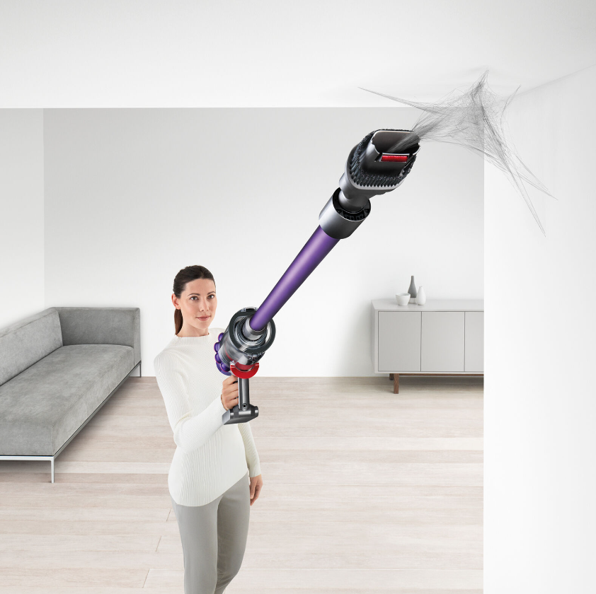 The V10 Animal + has the most powerful suction of any cord-free vacuum. Tested to ASTM F558, against cord-free stick market. Up to 60 minutes' run time when using a non-motorized tool. Lightweight and versatile, to clean right through the home. Instant-release trigger means battery power is only used while it’s cleaning. Requires charging for 3.5 hours minimum before first use. Torque drive cleaner head – our most powerful yet. Up to 20 minutes of fade-free power (in Suction mode II). Drives stiff nylon bristles into carpets to capture deep-down dirt. Powered by the Dyson digital motor V10 and engineered to pick up ground-in dirt and fine dust from hard floors and carpets. Quickly transforms to a handheld vacuum, to clean all around your home and car. Hygienic 'point and shoot' bin emptying. Bin volume 0.2 gallons. 6 month warranty on parts & labor. Designed to deep clean homes with pets. The fully-sealed filtration system traps 99.97% of particles as small as 0.3 microns – expelling cleaner air.