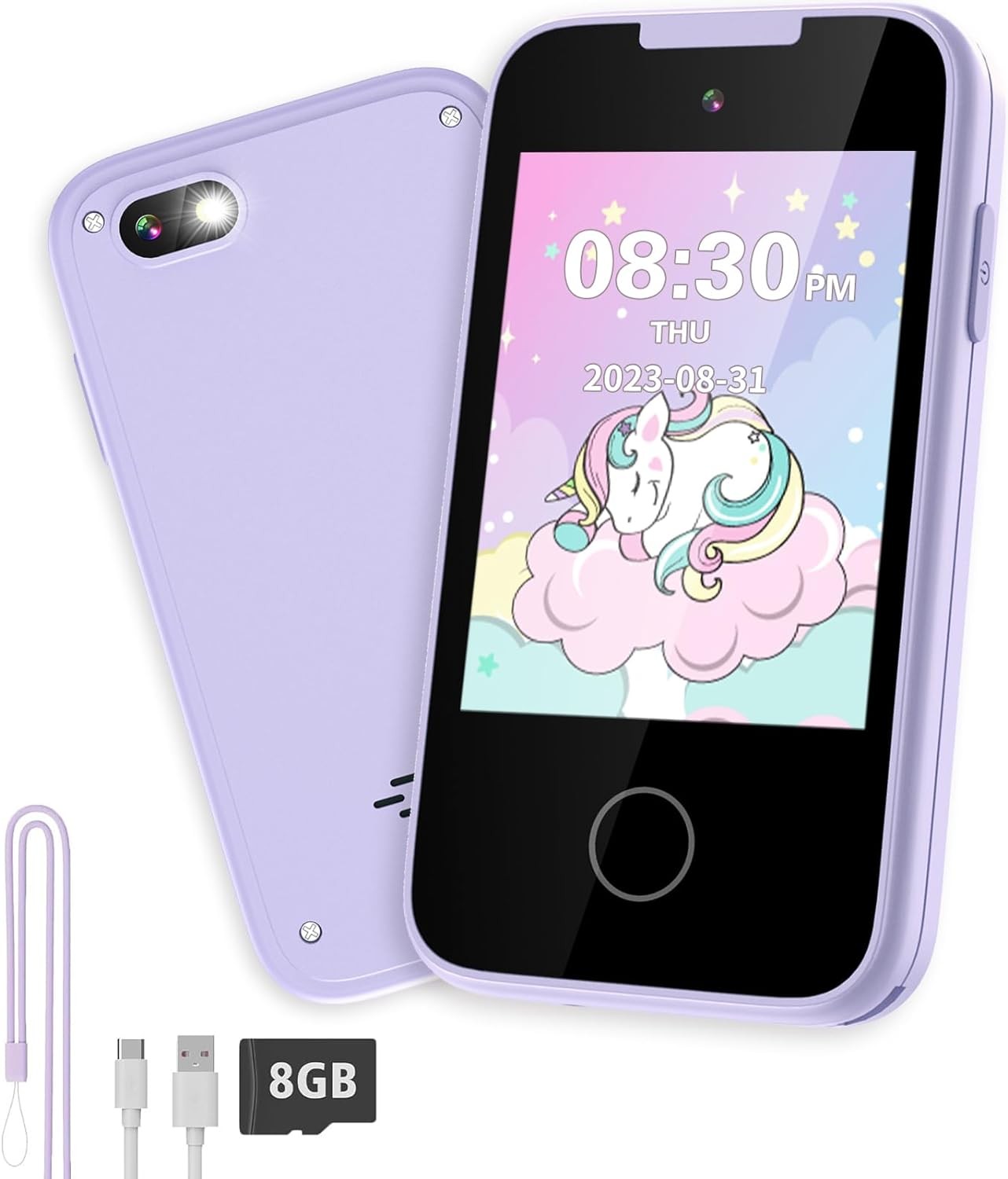 • ?【Powerful Battery Life & Large Memory】Continuously taking photos for 4-5 hours after fully charged. Come with 8GB SD card to store thousands of photos. Kids can take pictures at anytime, anywhere, and seize every wonderful moment of joy. This toy smart phone is used high quality non-toxic soft plastic, which is more safe and comfortable for children’s skin.