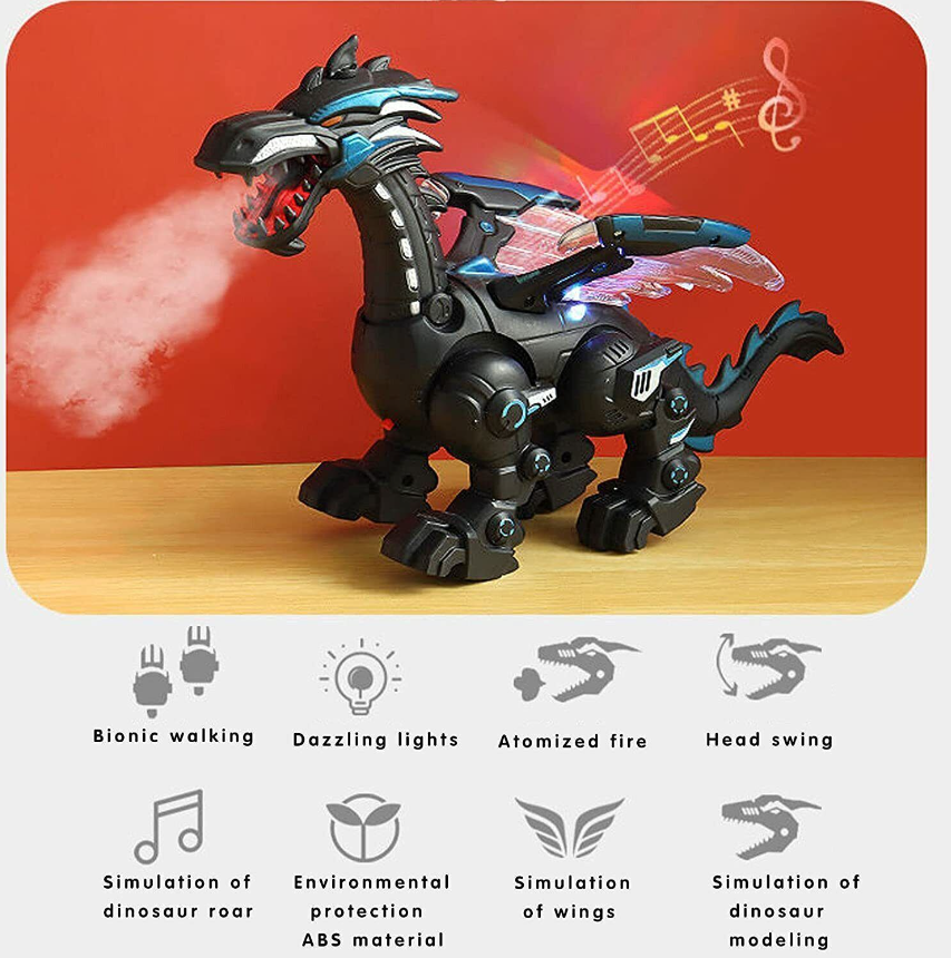 【Interactive Dinosaur Toy】: Growls Walking dinosaur has Technology Machinery Dinosaur appearance. Dinosaur has stunning, dazzling lights that illuminates. It could move, flame spraying, realistic roaring Suitable for family entertainment, but also the children's loyal growth partner.