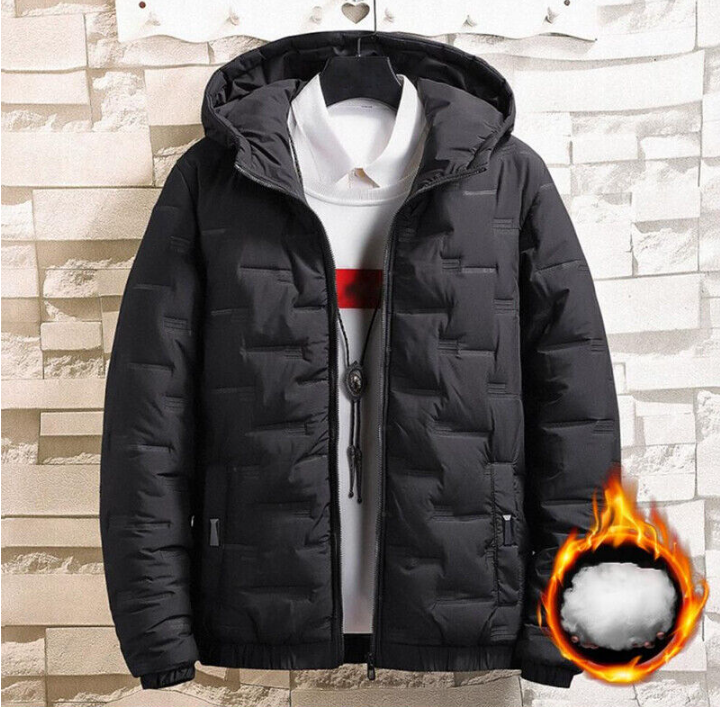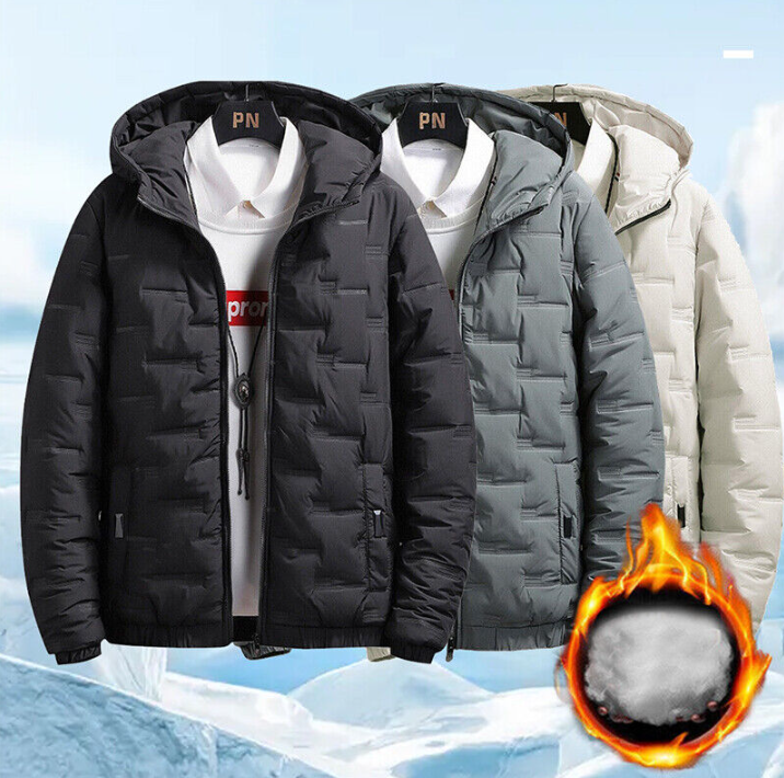 Men's Puffer Jacket Quilted Padded Winter Warm Bubble Hooded Full Zip Coat Tops