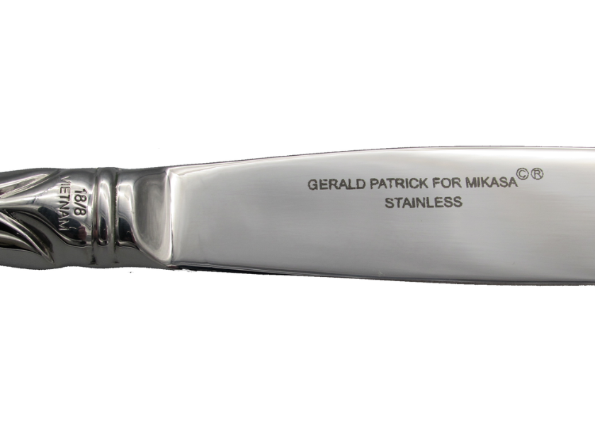 This flatware is crafted from high quality 18/8 stainless steel and was designed by Gerald Patrick for Mikasa. Flatware is marked "Gerald Patrick for Mikasa 18/8 Stainless Vietnam"