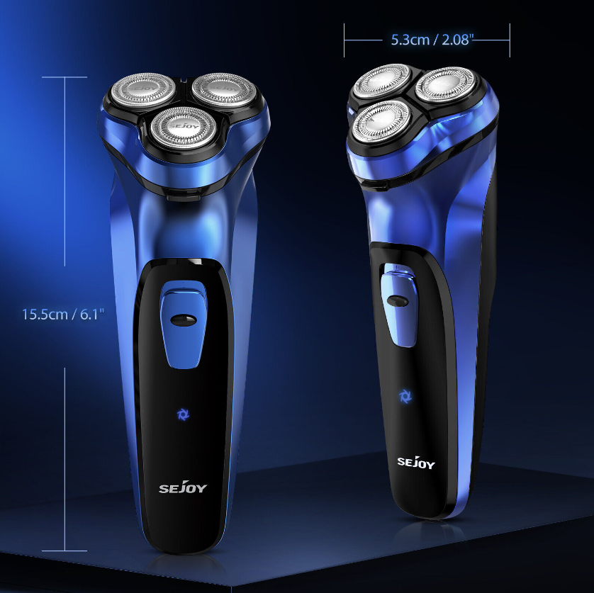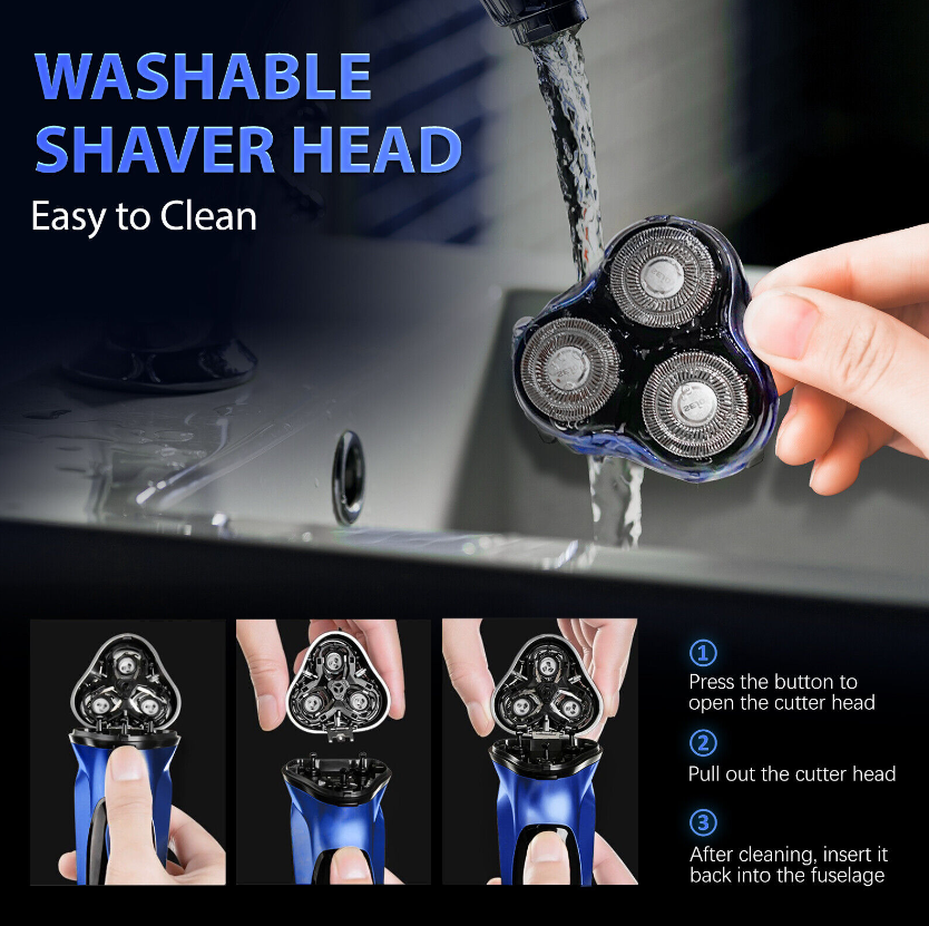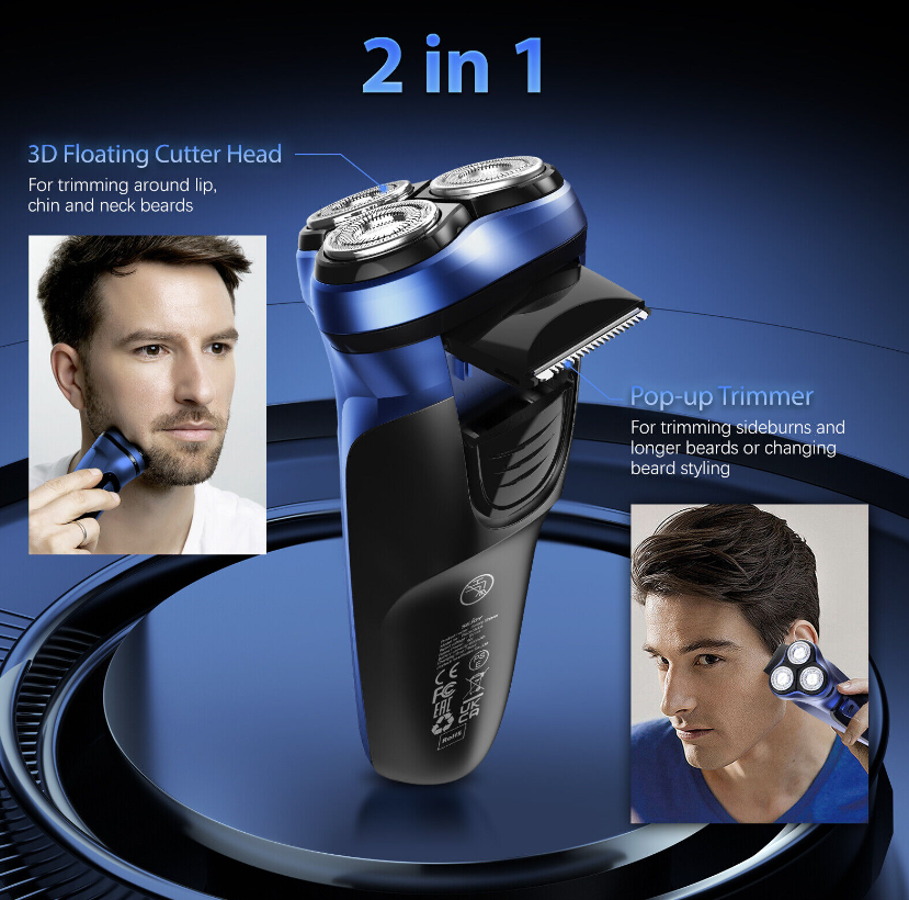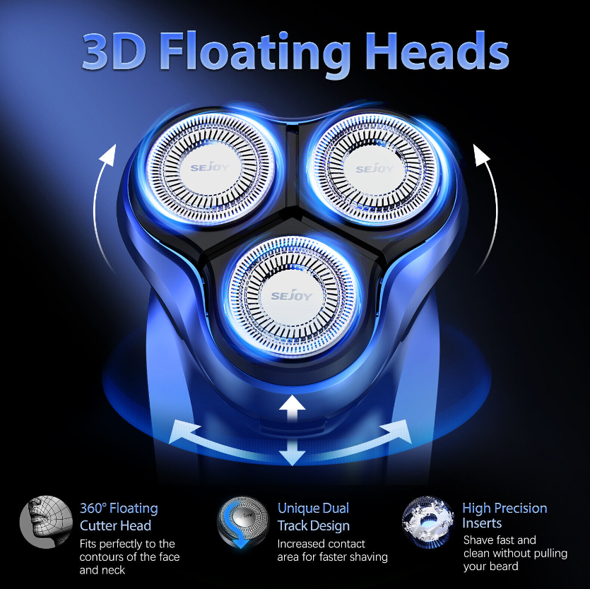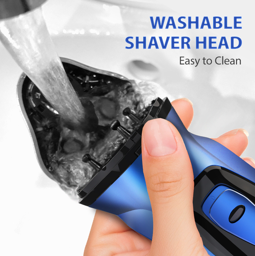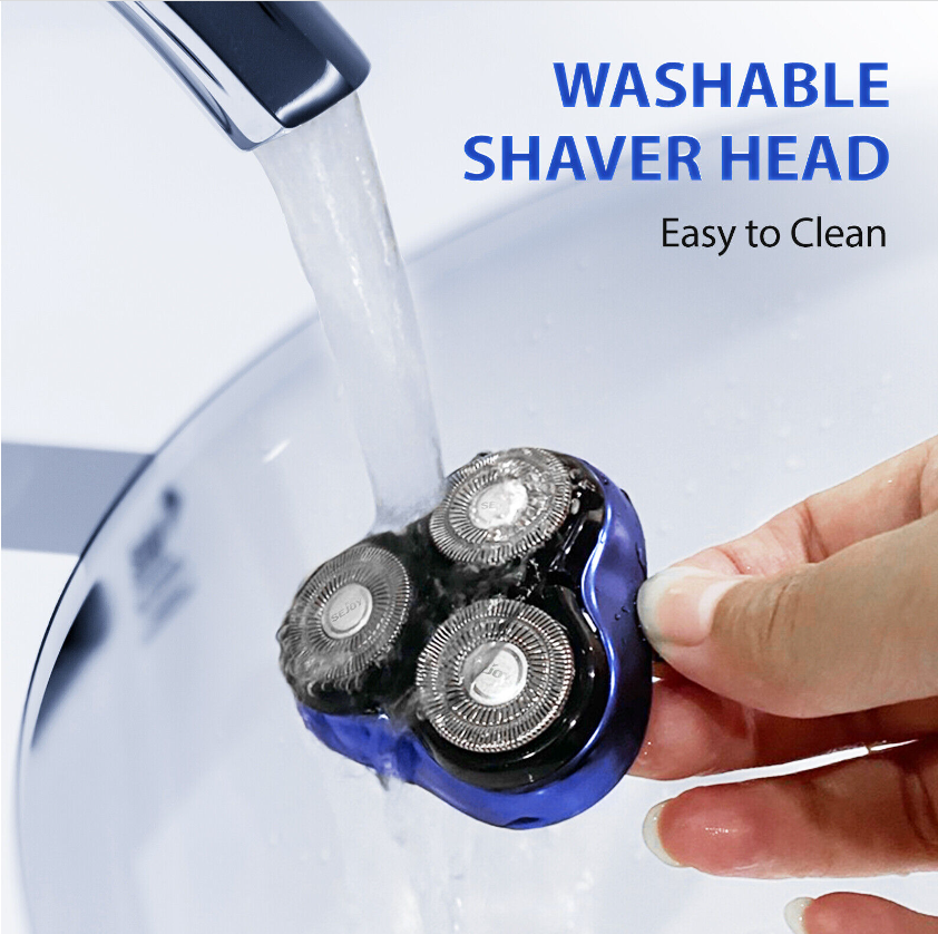 【3D Floating Shaving Head】-This electric razors for men is equipped with three 3D floating shaving heads which can perfectly follows the contours of your face, the neck and jaw line.It reduces skin friction and ensure smooth and gentle shaving.