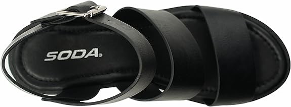 Soda ACCOUNT ~ Women Open Toe Two Bands Lug sole Fashion Block Heel Sandals with Adjustable Ankle Strap