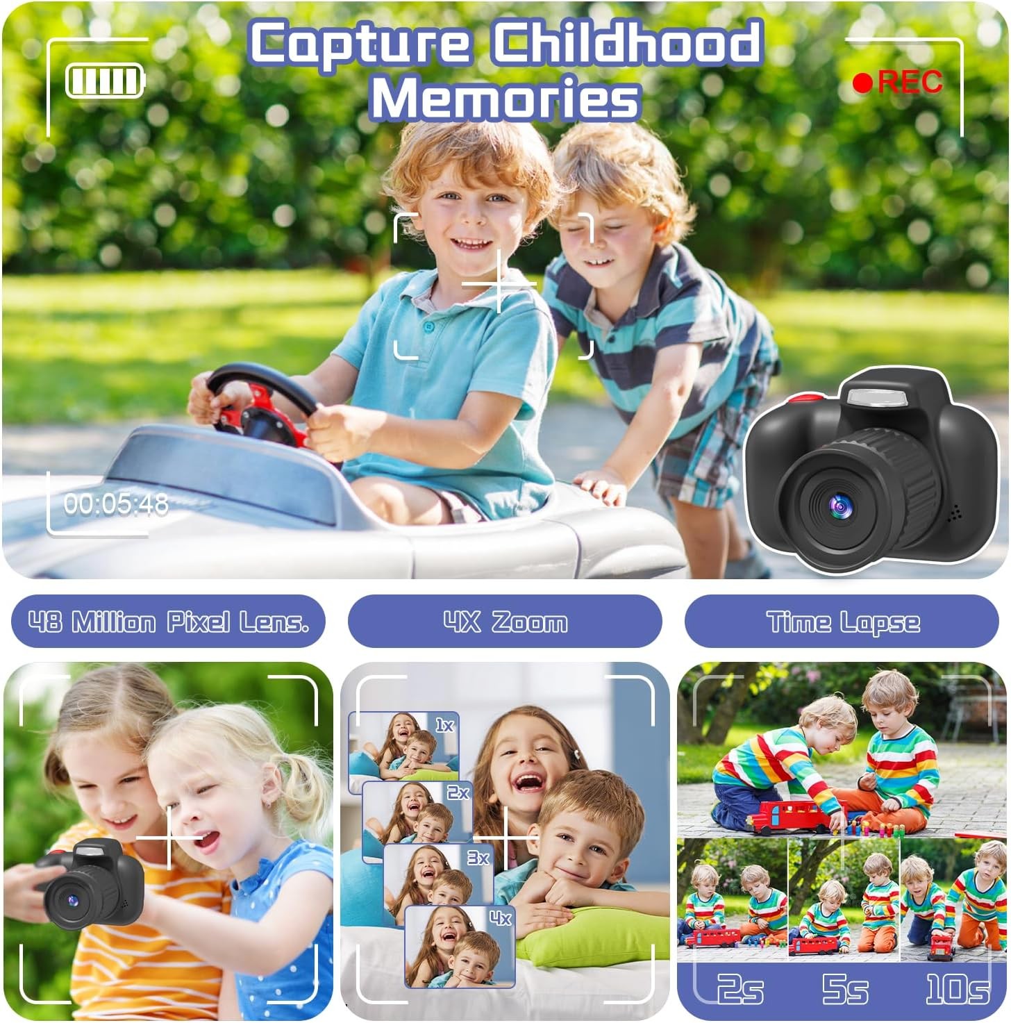 ??【HD Kids Digital Camera】Children Camera is Equipped With A High-quality Auto Focus And 48m Megapixels Lens, Supports 720p, HD 1080P Video Recording, Greatly Improves The Quality Of Photos And Videos, Also Can Help Kids Capture Life's Beautiful Scenes, Some Hilarious Photos, And Wonderful Moments With Friends And Family.