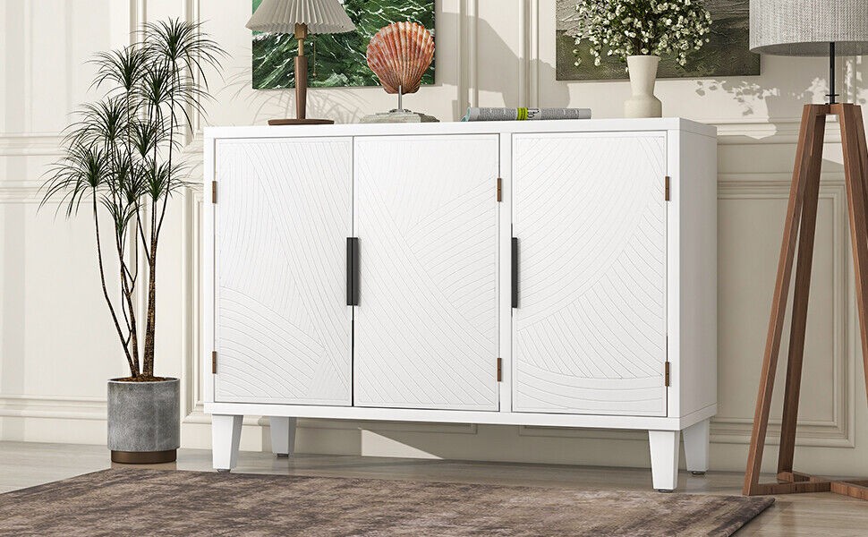 U-Style Accent Storage Cabinet Sideboard Wooden with Antique Pattern Doors for
