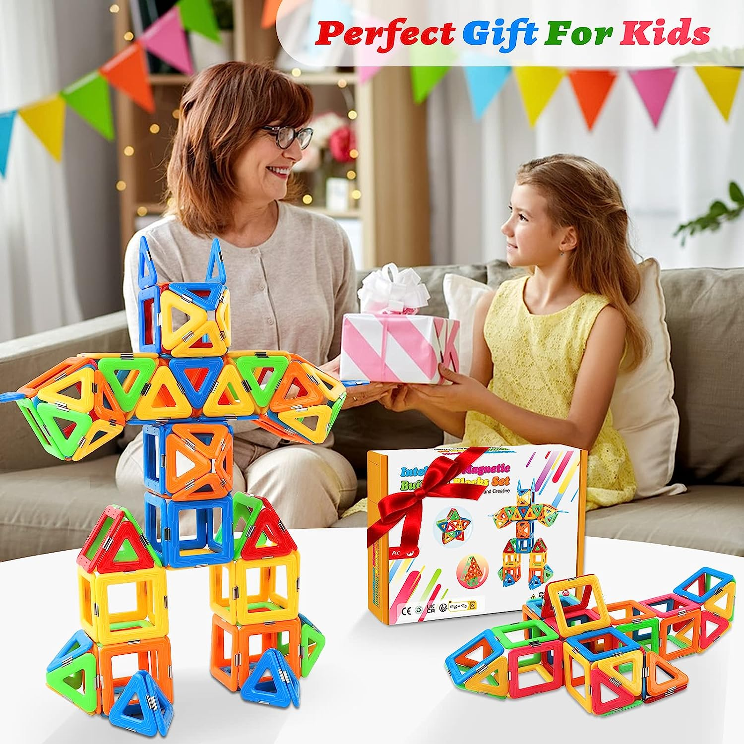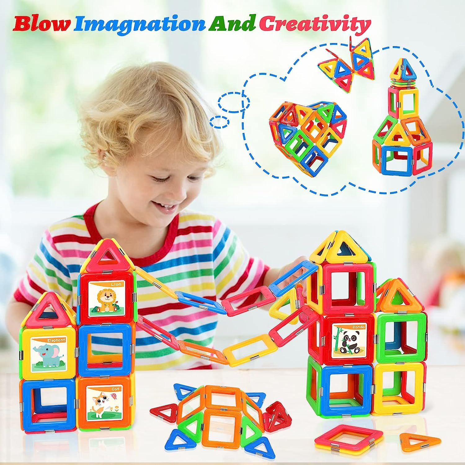 Upgraded Magnetic Tiles for Kids Ages 3-5 4-8 STEM Educational Gifts Toys for 3+