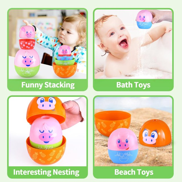 MULTIPLE PLAY: Kids can stack this Easter nesting egg toy one piece at a time, or draw their own doodles on the piggy to decorate or create a fun story. It can also can be used as bath toys, water toys, pool toys, bathtub toys, beach toys, rattle toys, projection toys, etc., giving your child plenty of playtime. Perfect baby Easter toys for toddlers outdoor/indoor activities.